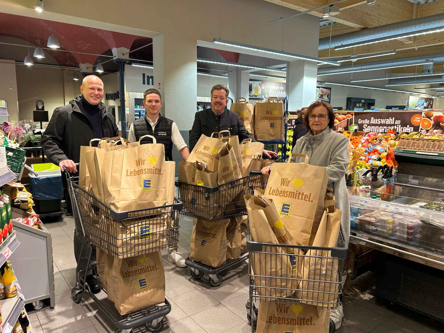 Was in Zeiten der Corona-Pandemie seinen Ursprung fand, wird heute noch mit viel Herzblut und Engagement weitergeführt. Seit 2021 gibt es bei der EDEKA Unternehmensgruppe Nordbayern-Sachsen-Thüringen einmal im Jahr eine Spendenaktion im gesamten Zuständigkeitsbereich, welche den jeweiligen Tafeln vor Ort und damit bedürftigen Menschen zugutekommt. Dabei standen in den teilnehmenden EDEKA-Märkten seit dem 22. September zwei bis drei Wochen für jeweils fünf Euro Lebensmitteltüten zum Verkauf, welche die Kundinnen und Kunden erwerben können. Nach dem Erwerb durch die Kundschaft wurden diese Tüten durch das jeweilige Personal innerhalb des Marktes aufbewahrt und im Anschluss an den Spendenzeitraum an die lokalen Tafeln der Umgebung übergeben.